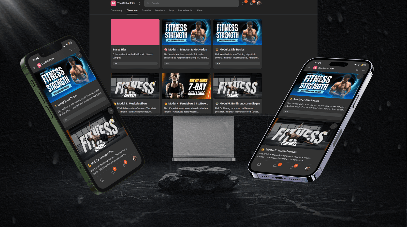 Nachdem du dich angemeldet und The Global Elite beigetreten bist, kannst du selbst wählen, welches Modul für dich am sinnvollsten ist und am besten zu deinen aktuellen Zielen passt.